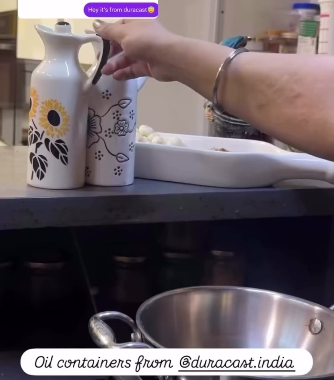 Available in assorted handcrafted designs – from sunflower motifs to geometric and floral patterns – each bottle is unique, adding a touch of artistry to your kitchen or dining table. (Note: Designs are assorted; any available pattern will be delivered.)