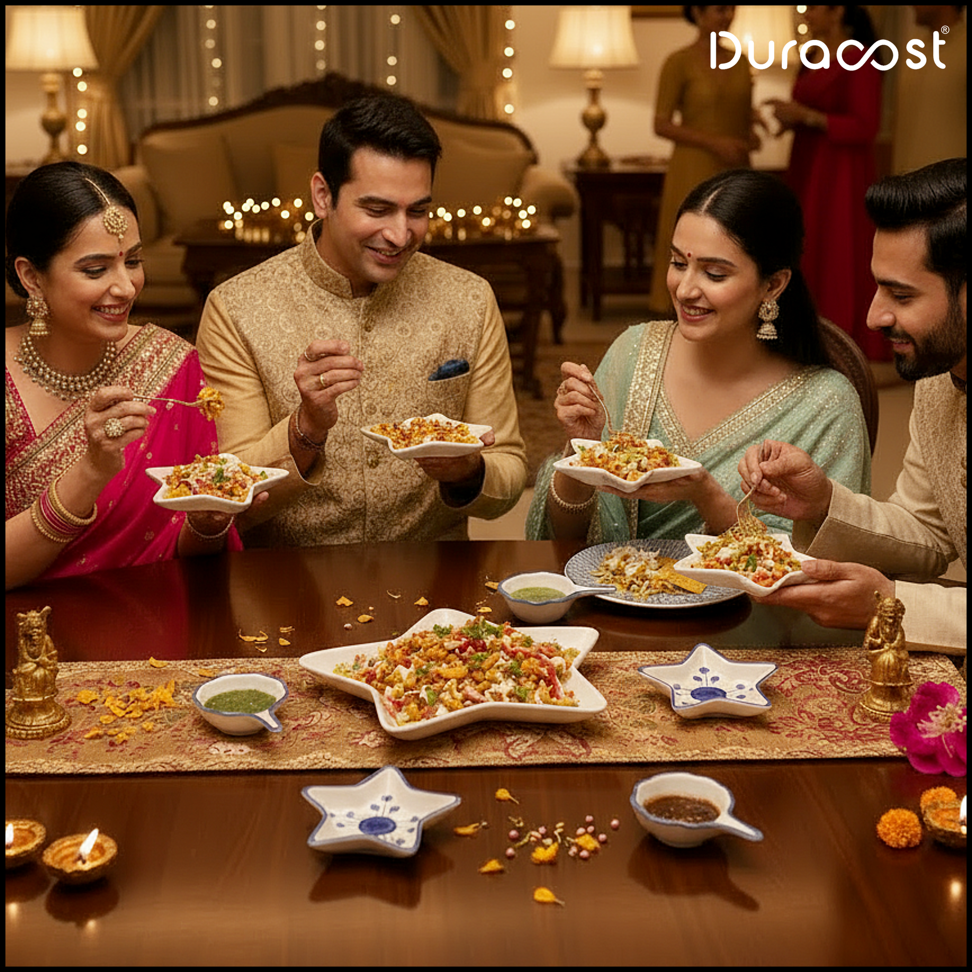 Turn your snack time into a starry delight with the DuraCast® ChaatStar – a 7-piece ceramic serving set designed for authentic Indian snacking experiences.