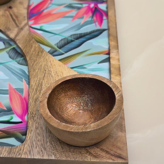DuraHost™ Tropic Feast Wooden Platter Set | 14"x10" Tropical Serve Platter with 2 Matching Dip Bowls | Premium Handcrafted Snack & Starter Serving Set