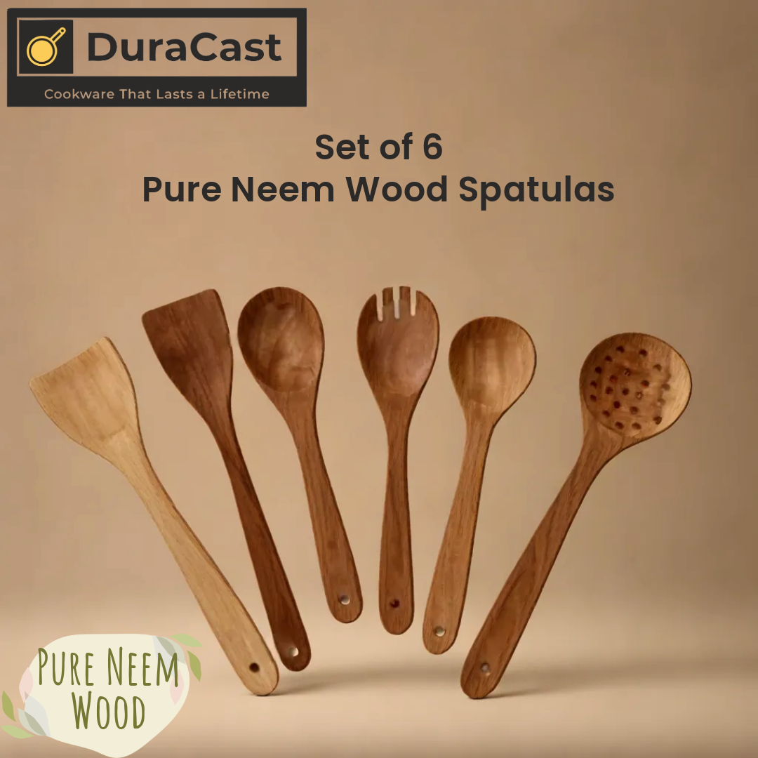 Set of 6 Pure Neem Wood Spatulas- Eco-Friendly & Durable | DuraCast India